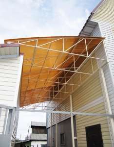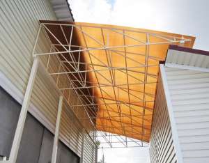 Стоимость навеса из поликарбоната относительно невысока, а степень защиты имущества от вредного воздействия окружающей среды будет достаточно высокой.